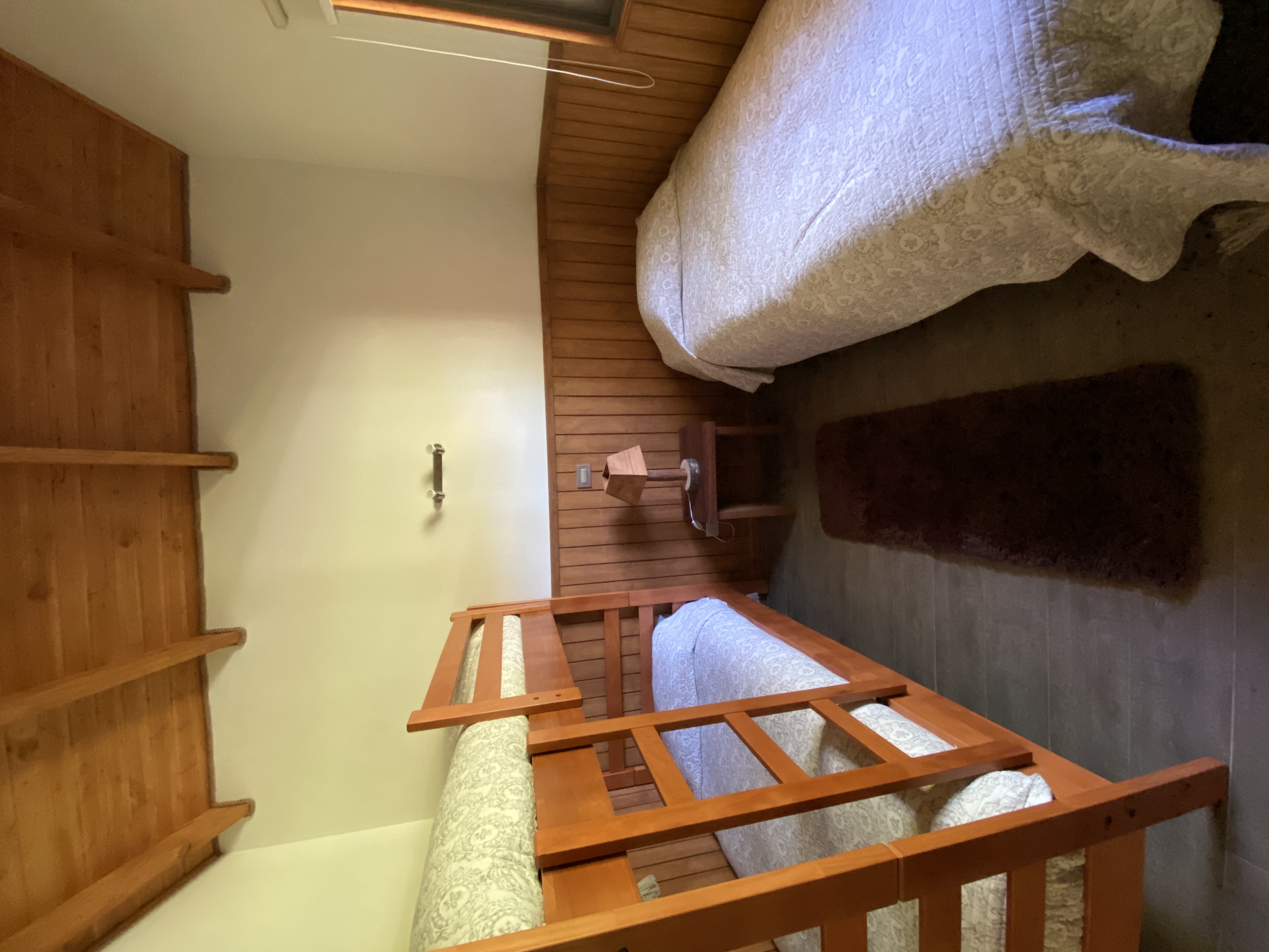 Si viajas con familia o amigos, nuestras cabañas de dos dormitorios, son perfectas para recibir cómodamente a cinco personas. Cuenta con dos dormitorios, el primero con una cama matrimonial y el segundo con una litera y una cama single, además cuenta con un futón que puede adaptarse como semi cama.